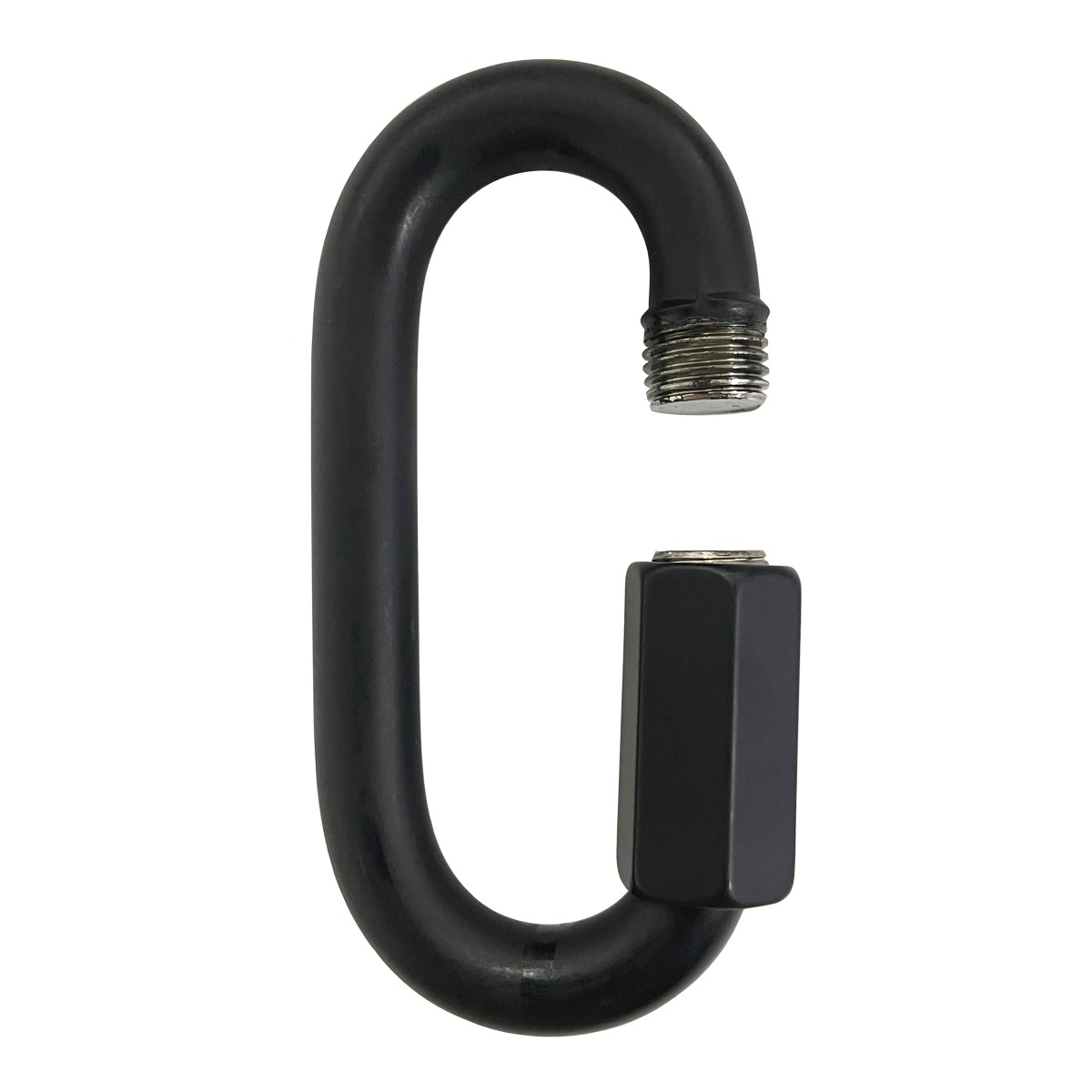 Black Quick Link made from A4 / AISI 316 stainless steel with dull black PVD finish. Secure threaded connector for chains, ropes, marine rigging, displays, camping, and outdoor fastening. Available in 4MM to 10MM sizes.