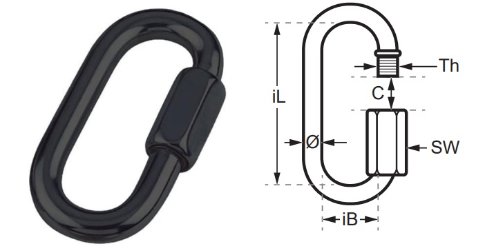 Black Quick Link is a stylish and durable fastening connector manufactured from A4 / AISI 316 marine grade stainless steel with a premium dull black PVD finish. Designed for secure connection of chains, ropes, straps, rigging hardware, and equipment, it combines dependable performance with a modern low-profile appearance.