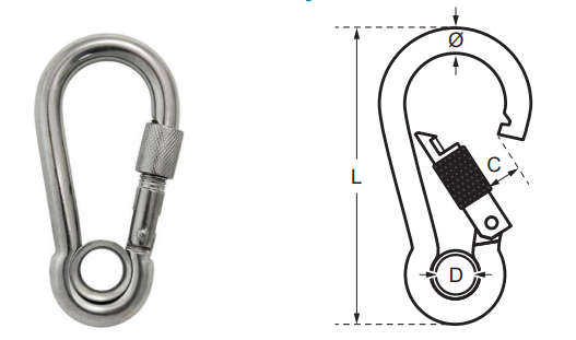 Carabiner Screw Gate with Eye is a premium fastening connector manufactured from A4 / AISI 316 marine grade stainless steel with a captive eye and secure screw gate locking mechanism. The eyelet provides fixed alignment for ropes, chains, cables, straps, or fittings, while the screw sleeve helps prevent accidental opening during use.